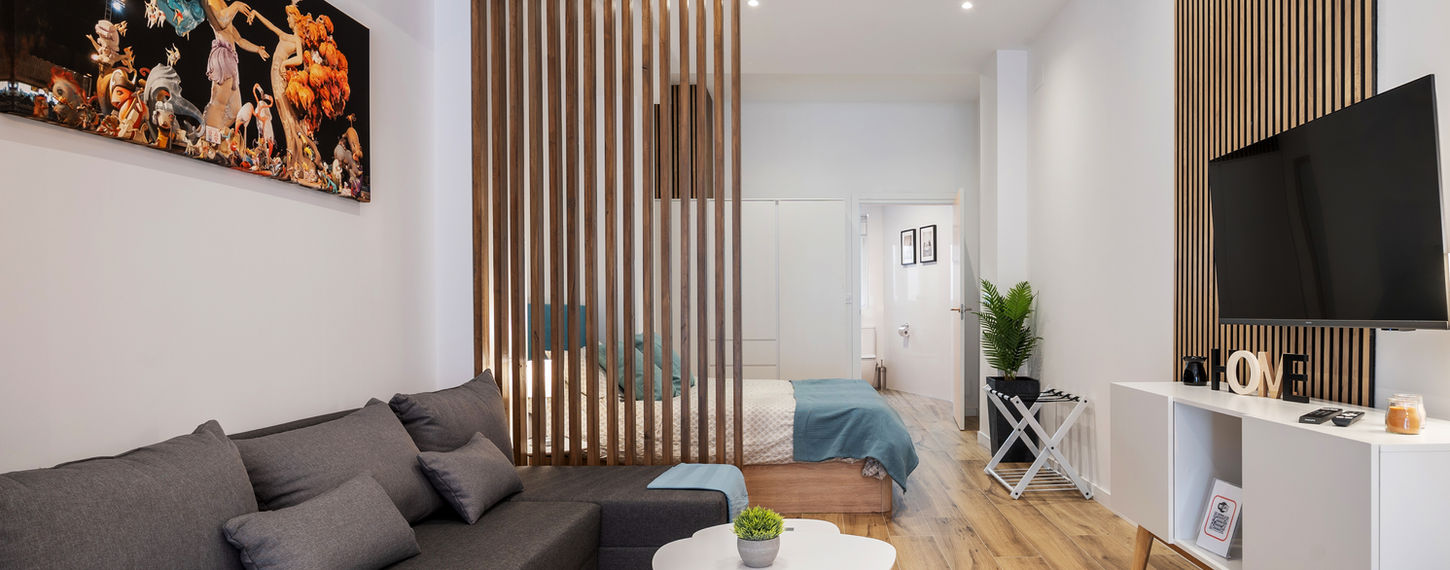 Moderno piso ubicado en la planta baja con acceso directo a la calle, situado a 14 minutos a pie de la Plaza del Ayuntamiento y dentro del barrio Raiosa, donde podrás encontrar diversos restaurantes, áreas verdes, buenas conexiones de bus y tren y servicios necesarios para una buena estadía.